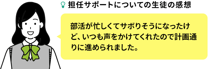 作成した合格スケジュールを、部活や学校行事と両立しながらやり抜けるよう、あなたを全力でサポートします。
