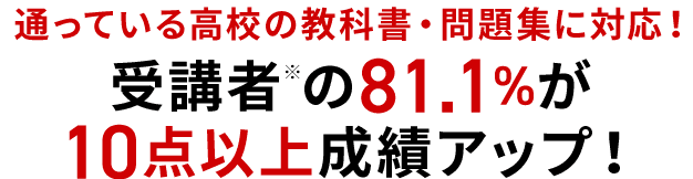 基礎学力診断や、通学している高校の教材に対応した指導で、一人ひとりにぴったりの学習カリキュラムを提案。前回の定期テストから、各科目で20点アップを目指します。